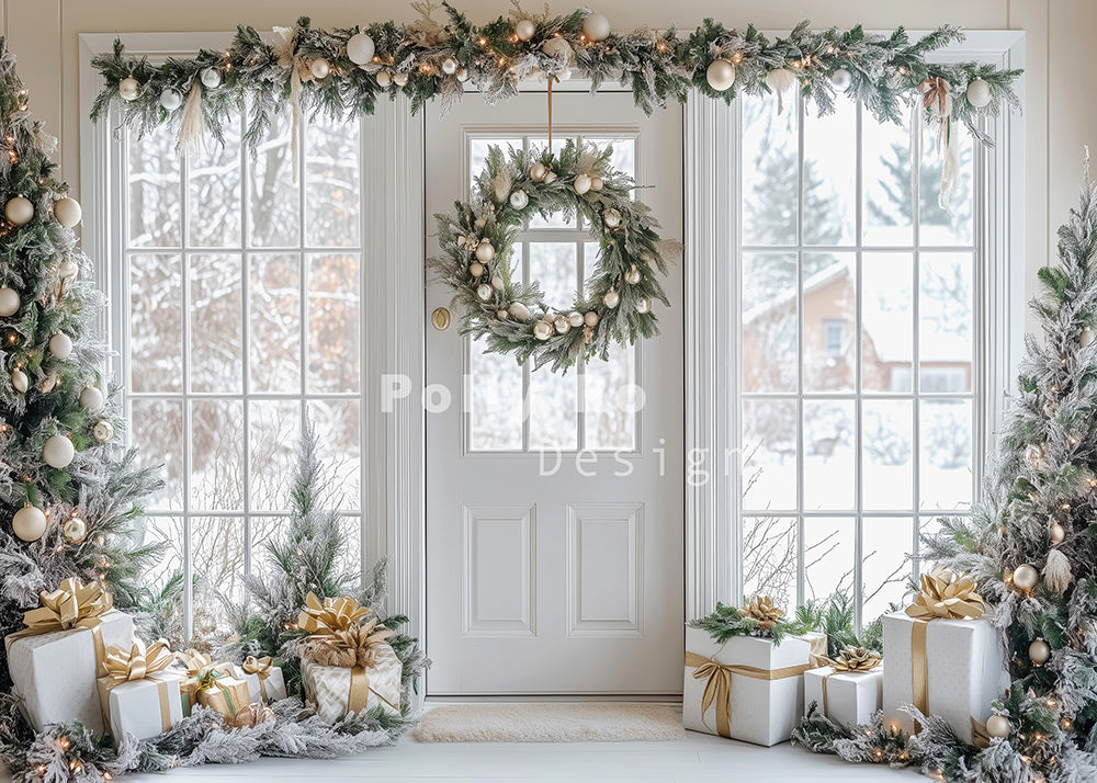 Avezano Christmas White Doors and Windows Photography Backdrop Designed By Polly Ro Design