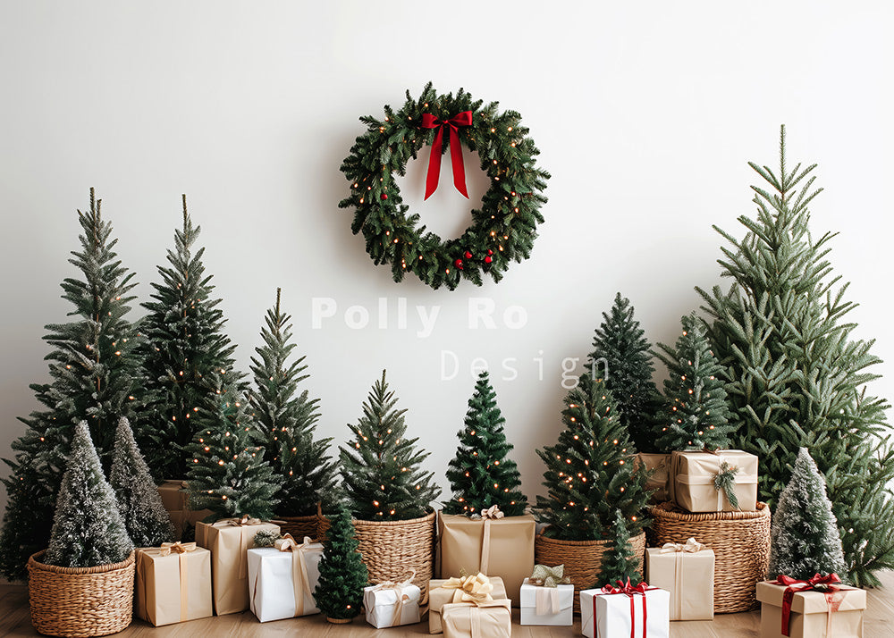 Avezano Christmas Bows and Trees Photography Backdrop Designed By Polly Ro Design