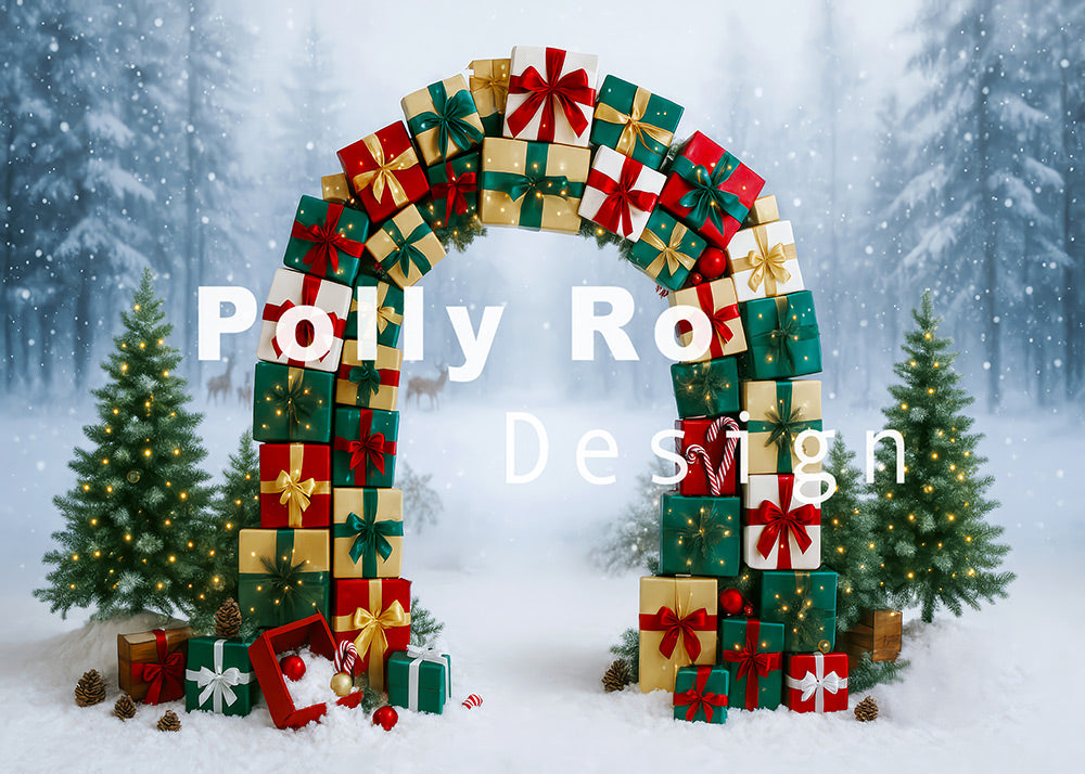 Avezano Colorful Gift Arch Christmas Forest Photography Backdrop Designed By Polly Ro Design