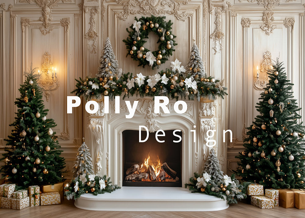 Avezano Simple White Christmas Fireplace Photography Backdrop Designed By Polly Ro Design