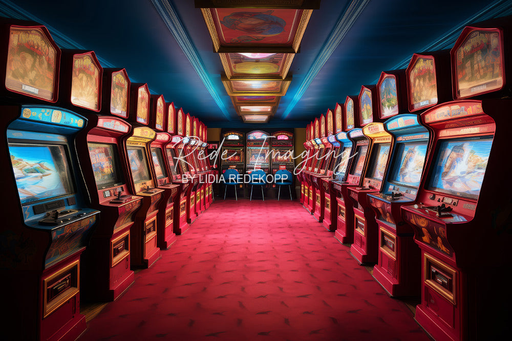 Avezano Retro Arcade Game Machine Red Carpet Photography Backdrop Designed By Lidia Redekopp