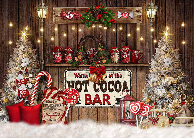 Avezano Winter Christmas Tree and Hot Cocoa Decoration Photography Backdrop Room Set