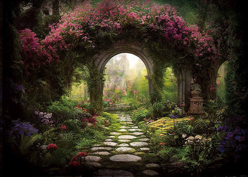 Avezano Spring Pink Stone Arch Door Photography Backdrop