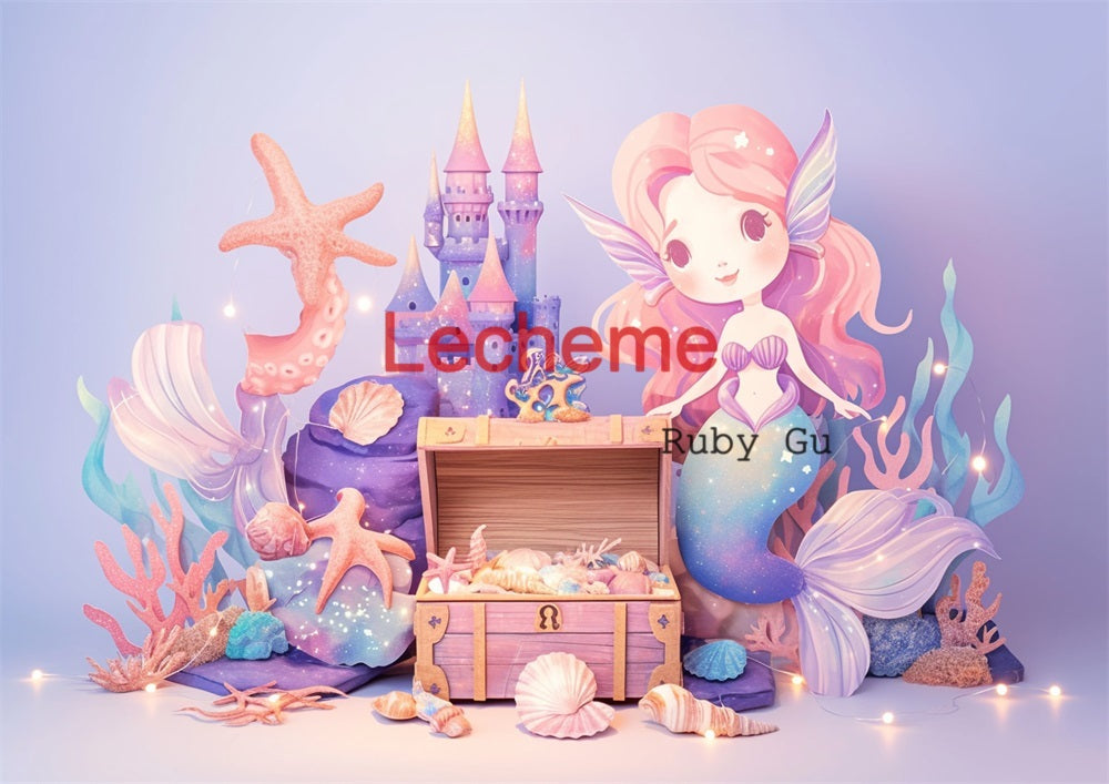 Avezano Summer Mermaid Princess and Treasure Chest Photography Backdrop By Lecheme Ruby Gu