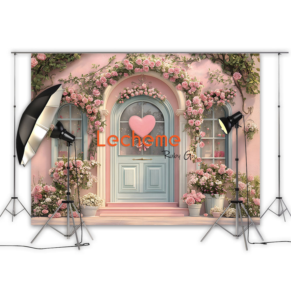 Avezano Valentine's Day Pink Roses and Blue Doors Photography Backdrop By Lecheme Ruby Gu