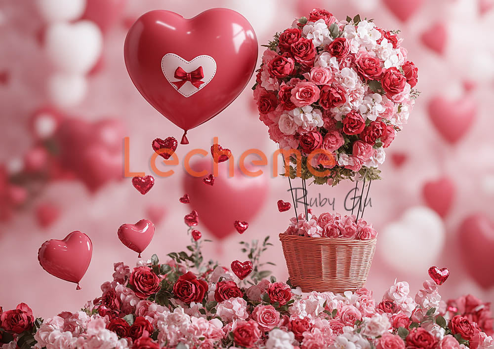 Avezano Red Bow Balloon and Basket Valentine's Day Photography Backdrop By Lecheme Ruby Gu