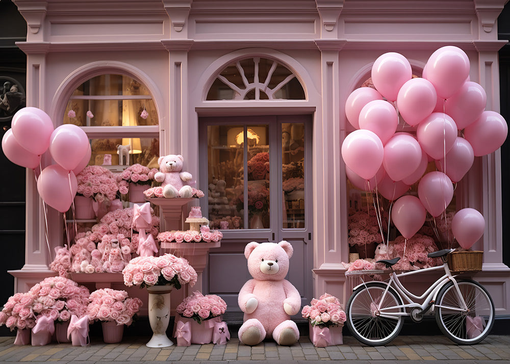 Avezano Valentine's Day Bear and Pink House Photography Backdrop