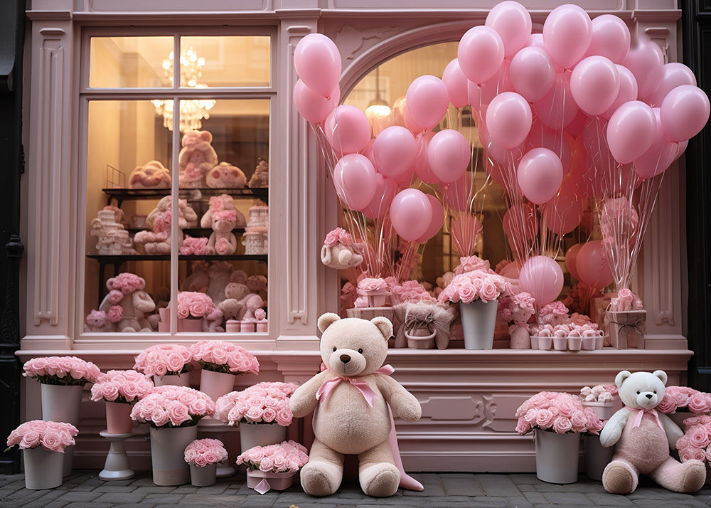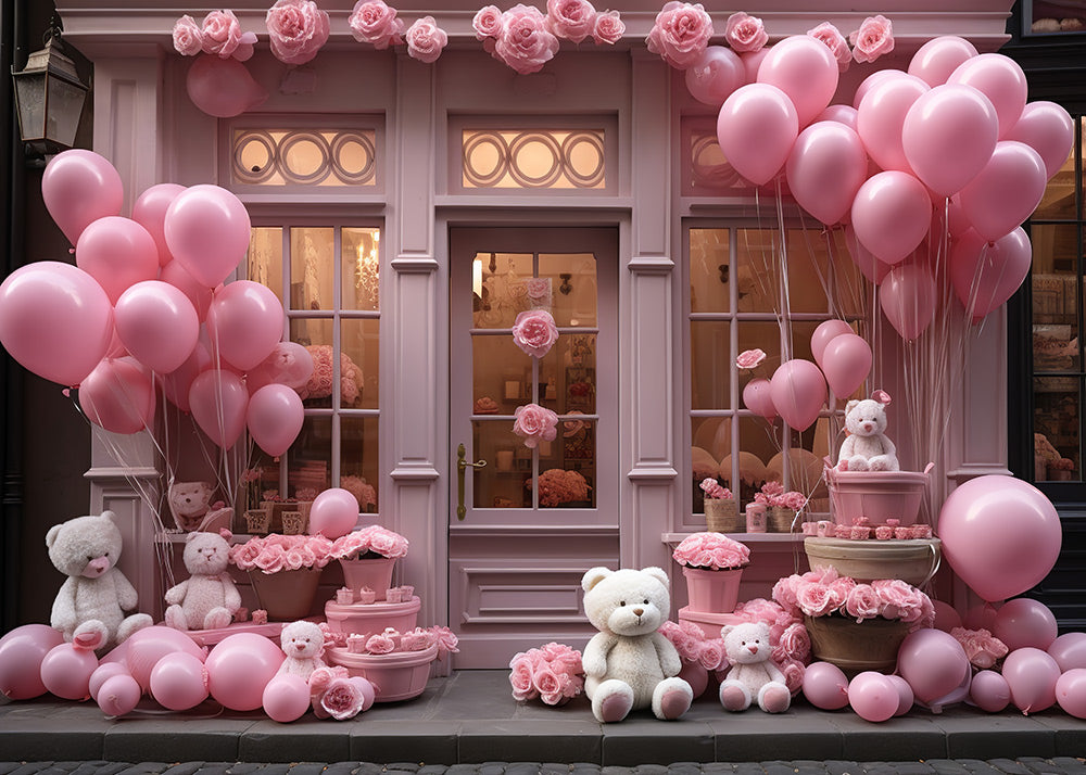 Avezano Valentine's Day Balloons and Pink Bears Photography Backdrop