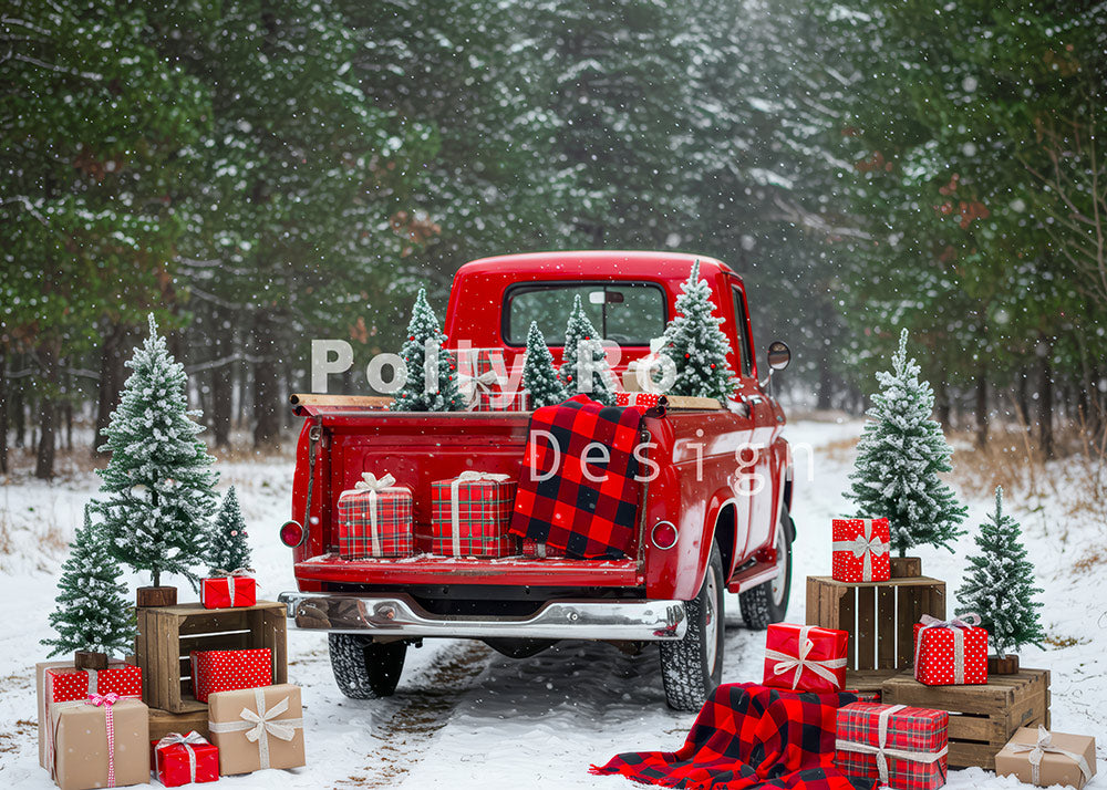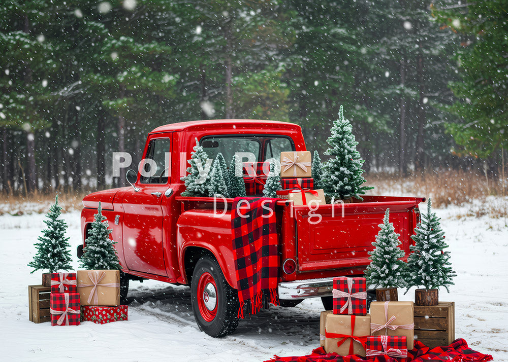 Avezano Red Truck Snow Gift Christmas Backdrop Designed By Polly Ro Design
