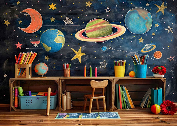 Avezano Desks and Crayons Photography Backdrop For Back To School