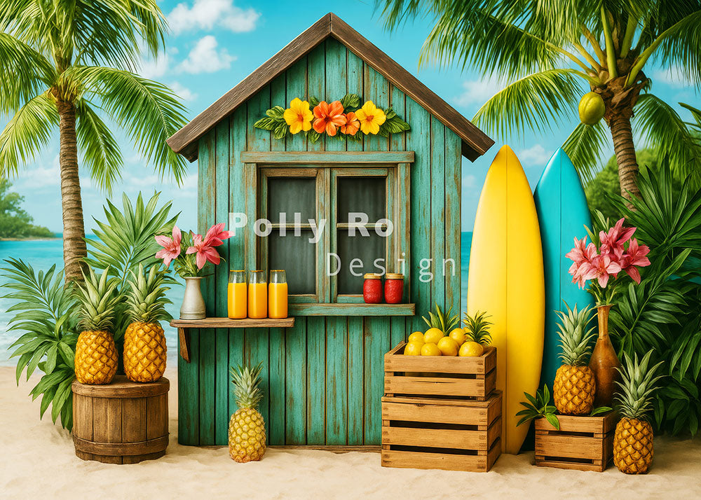 Avezano Tropical Beach Hut and Pineapple Photography Backdrop Designed By Polly Ro Design