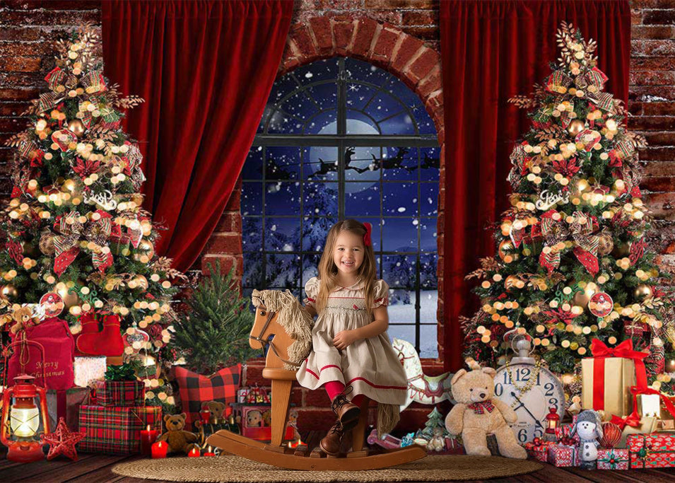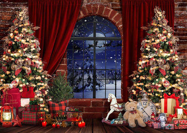 Avezano Red Curtains and Old Man Under the Moon Christmas Photography Backdrop