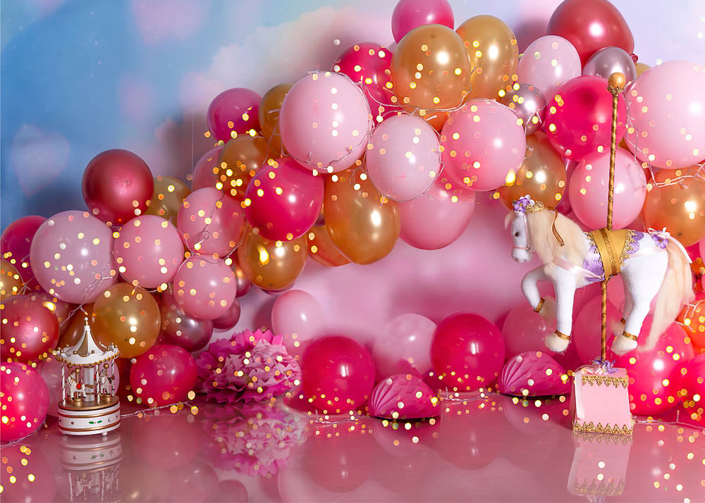 Avezano Pink and Gold Balloons One Cakesmash Backdrop for Photography Designed By Stefany Figueroa