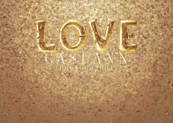 Avezano Glitter Love Balloons-Gold Matte Photography Backdrop Designed By Casi Ann