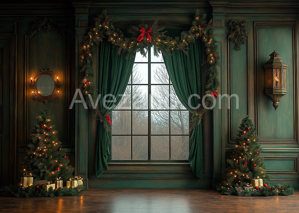 Avezano Christmas Green Curtains and Walls Photography Backdrop