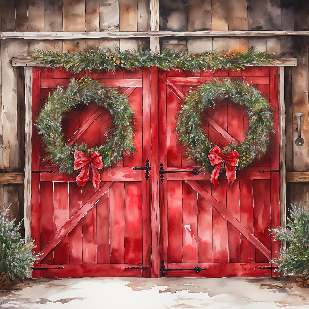Avezano Christmas Red Doors and Arches Photography Backdrop