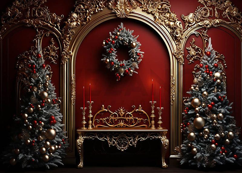 Avezano Indoor Arch and Christmas Tree Digital Backdrop Designed By Elegant Dreams