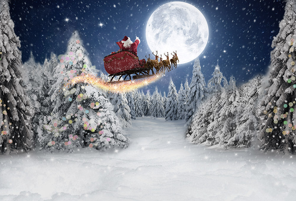 Avezano Winter Blue Christmas Tree and Santa Claus Photography Backdrop Room Set