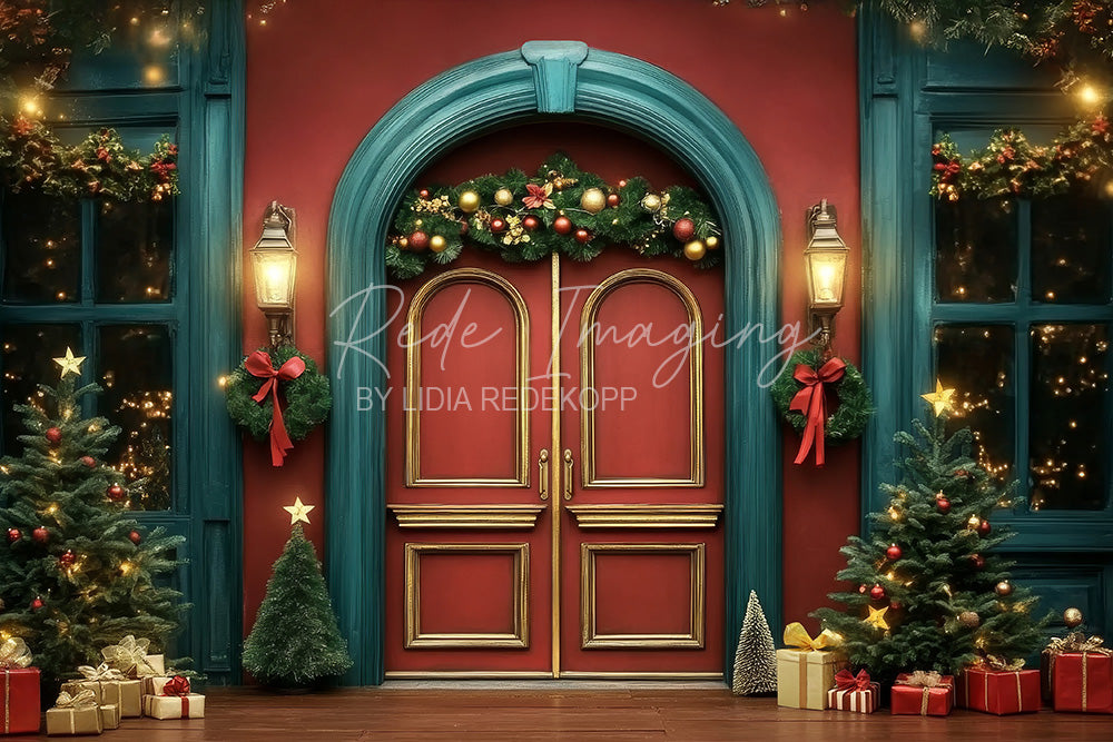 Avezano Red and Teal Door Christmas Photography Backdrop Designed By Lidia Redekop