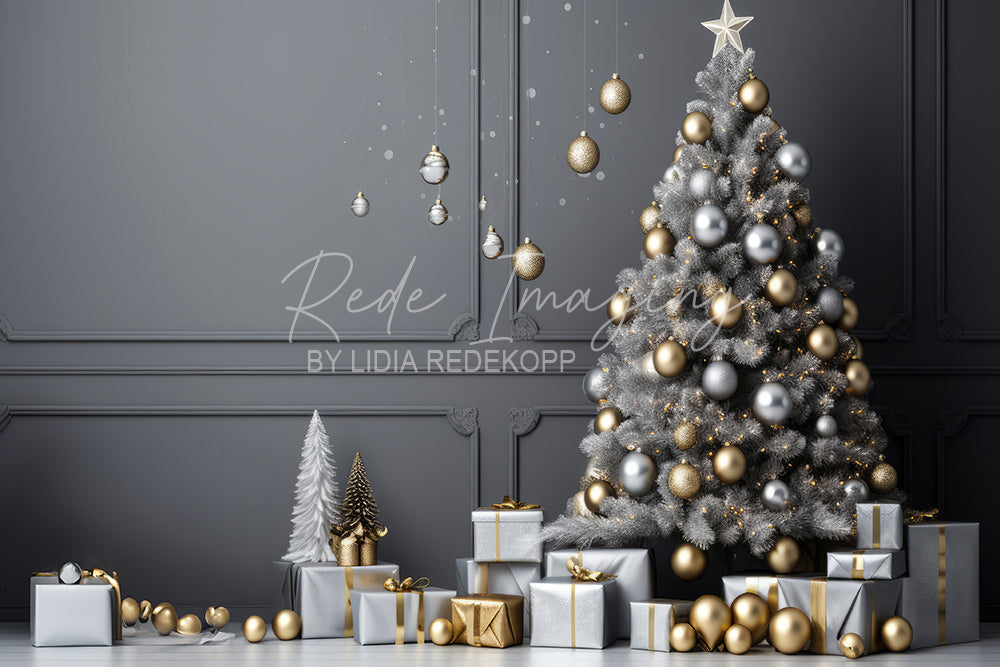 Avezano Grey Wall Silver and Gold Ornament Christmas Tree Photography Backdrop Designed By Lidia Redekop