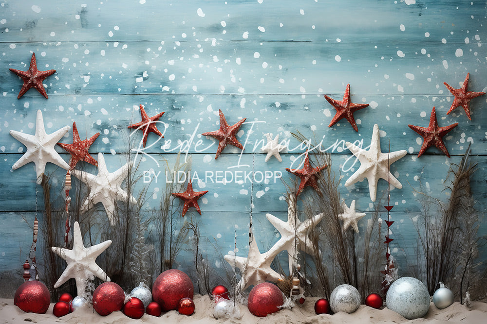 Avezano Blue Wooden Wall Starfish Christmas Photography Backdrop Designed By Lidia Redekop