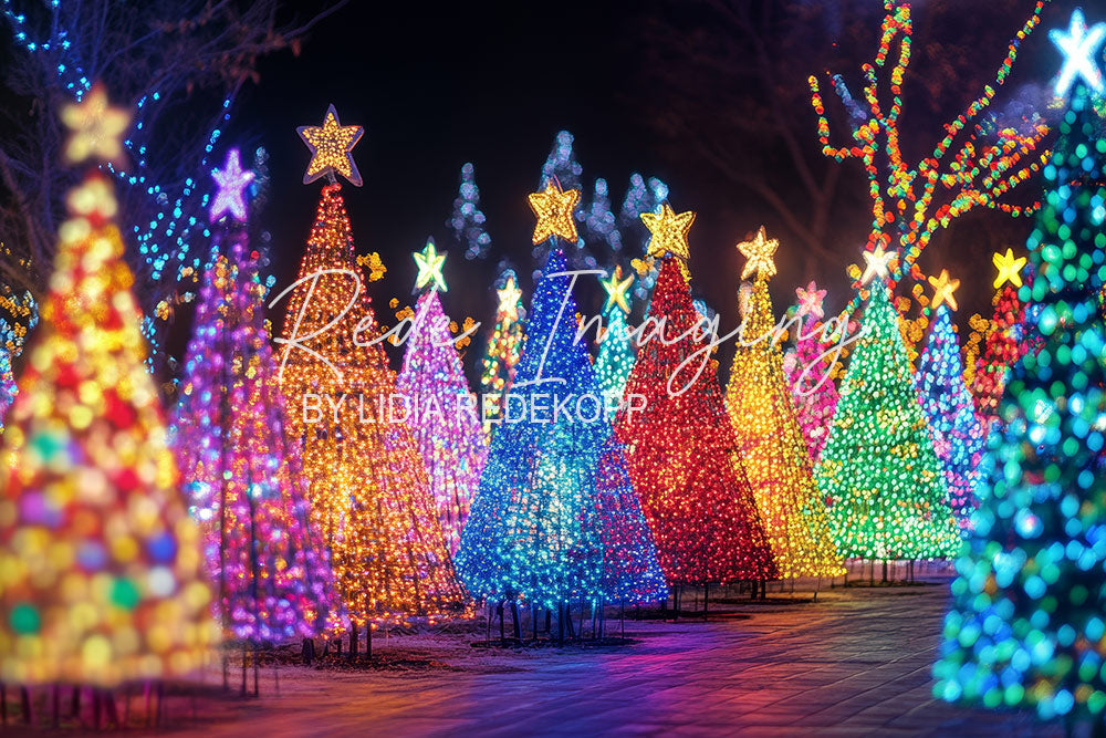 Avezano Colorful Lighted Christmas Tree Photography Backdrop Designed By Lidia Redekop