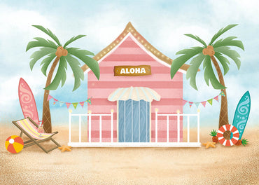 Avezano Summer Pink House Photography 2 pcs Set Backdrop