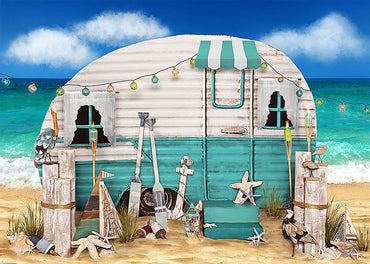 Avezano Summer Beach Car 2 pcs Set Backdrop
