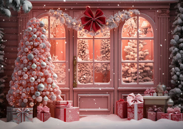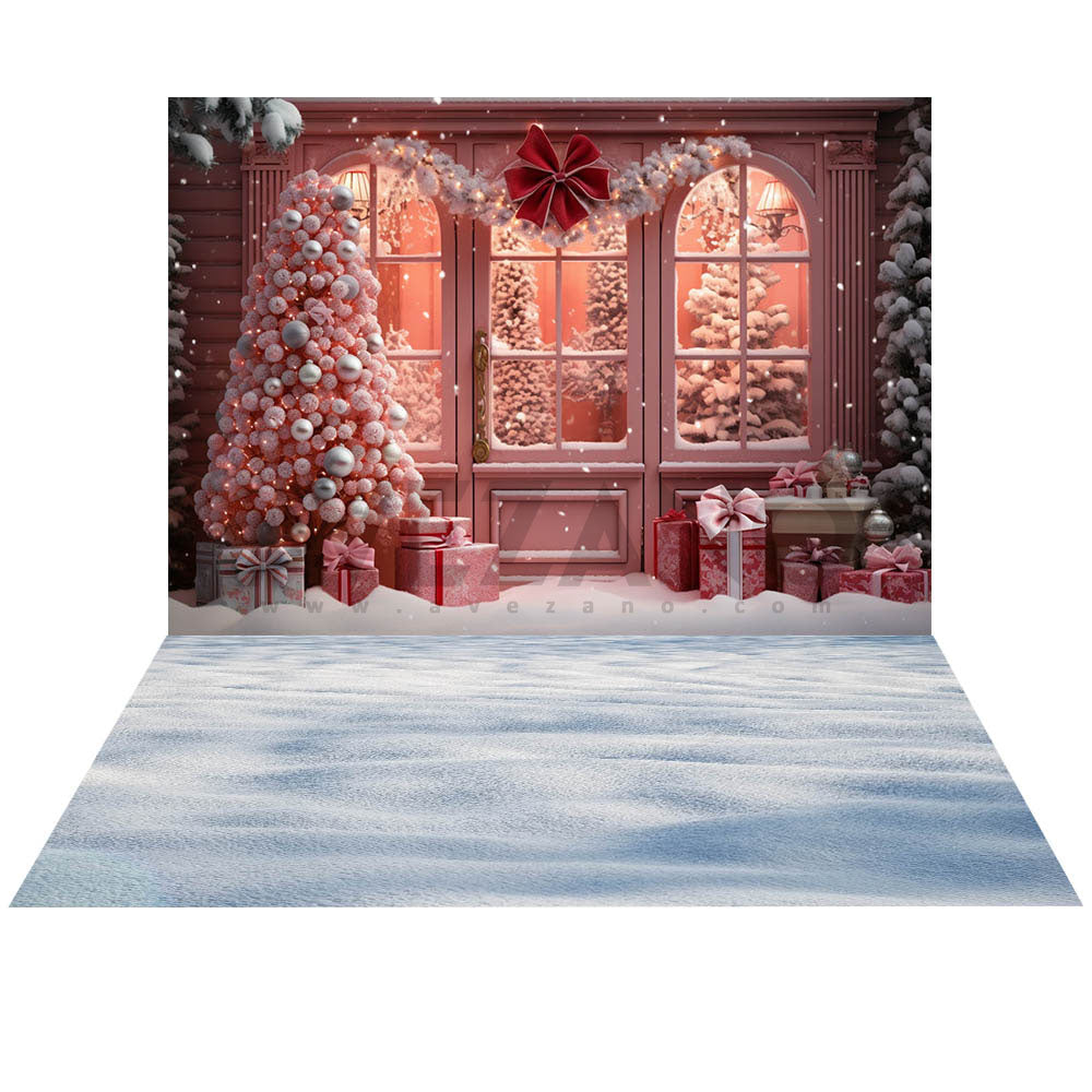 Avezano Christmas Pink Villa 2 pcs Set Backdrop