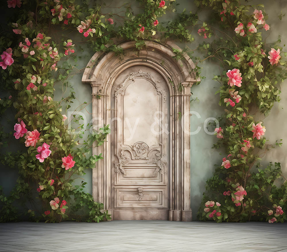 Avezano Vine Flowers and light Green Door Backdrop Designed By Danyelle Pinnington