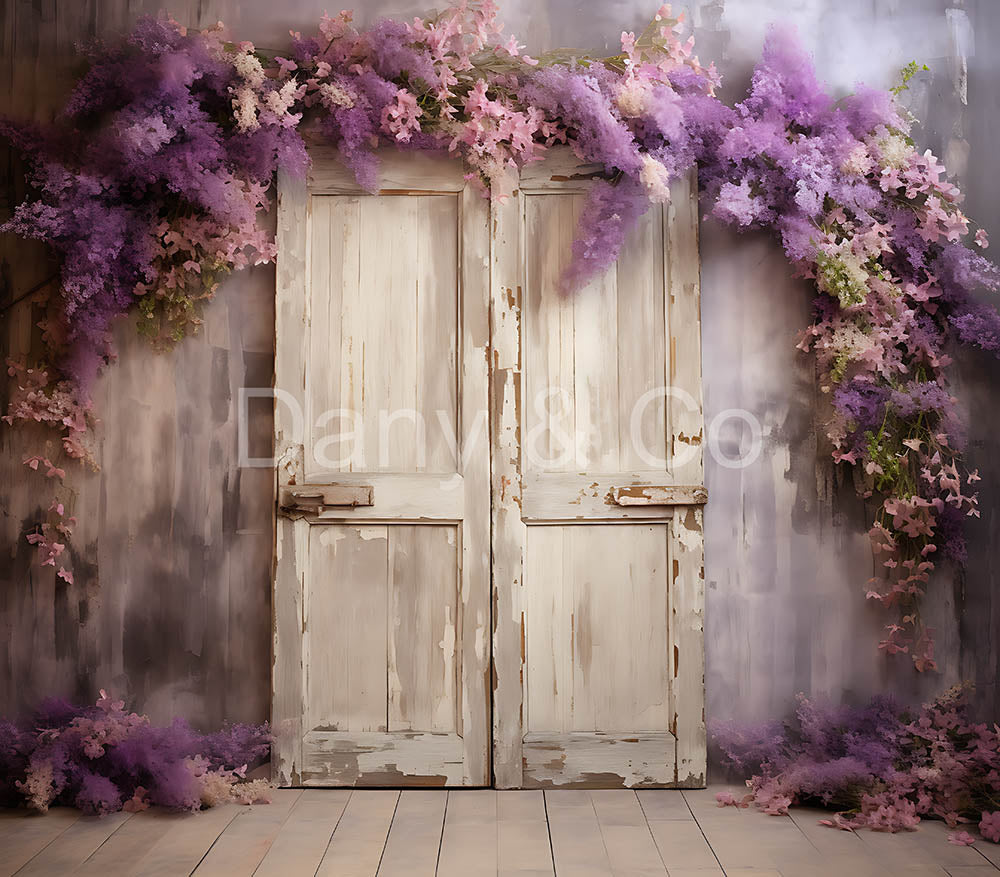 Avezano Shabby Door and Purple Flowers Backdrop Designed By Danyelle Pinnington
