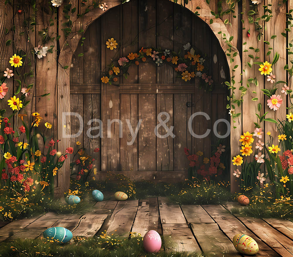 Avezano Easter Rabbits and Wooden Doors with Flowers Backdrop Designed By Danyelle Pinnington