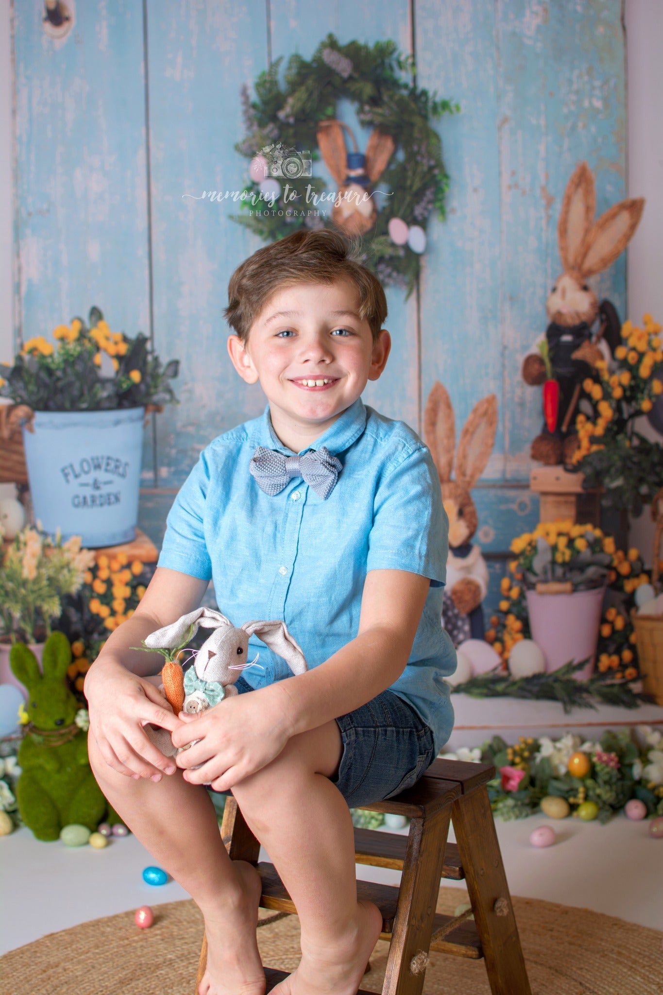 Avezano Easter Blue Wooden Door and Rabbit Photography Backdrop
