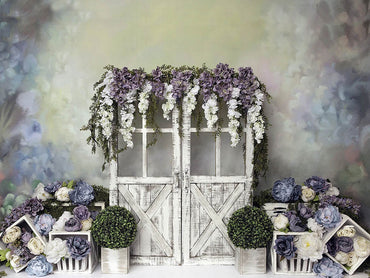Avezano Wooden Door And Purple Vine Flowers Photography Backdrop