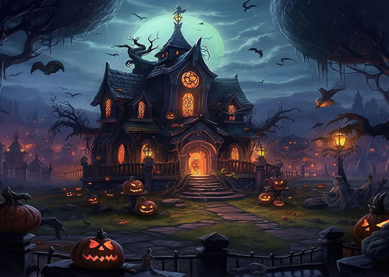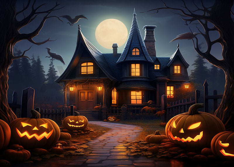 Avezano Moonlit Haunted House Halloween Backdrop for Photography