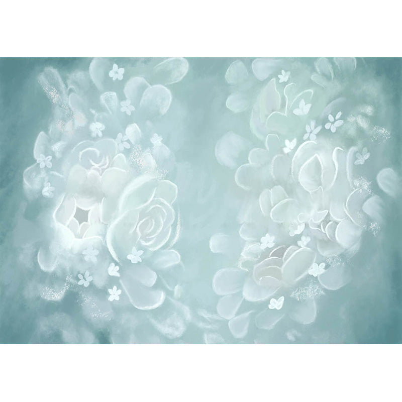 Avezano Light Cyan Hand Painted Flowers Photography Backdrop