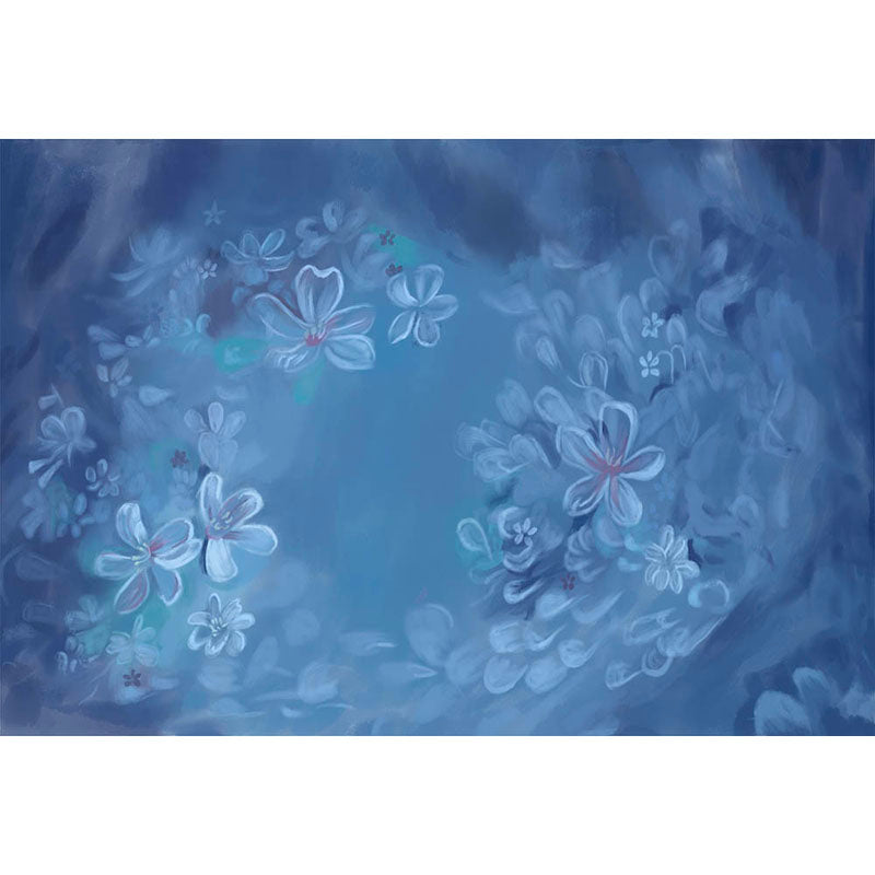 Avezano Cyan Tone Handpainted Floral Art Backdrop For Photography