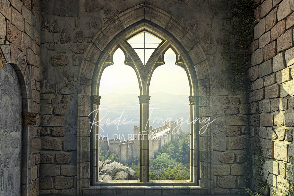 Avezano Medieval Castle Gothic Window View Photography Backdrop Designed By Lidia Redekopp