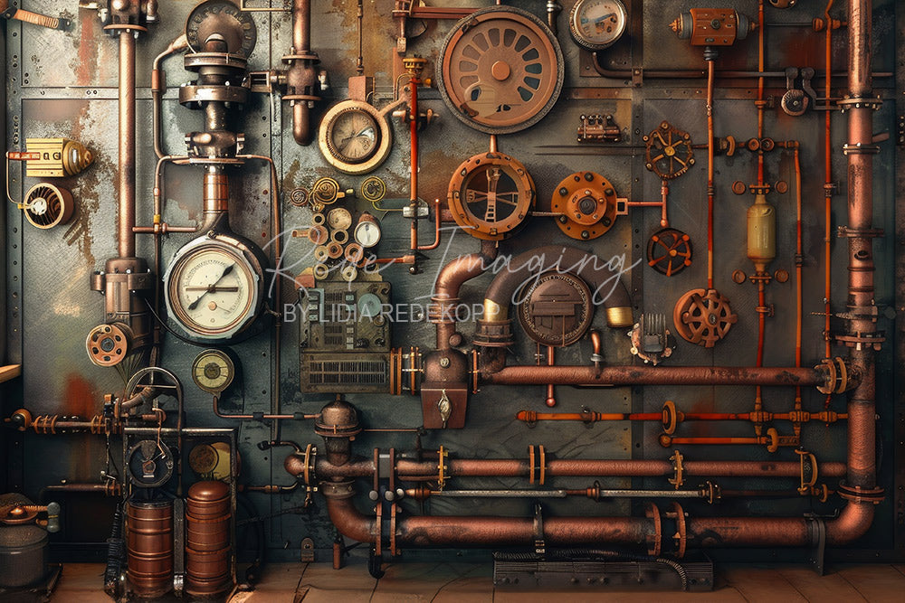 Avezano Steampunk Copper Pipe Mechanism Wall Photography Backdrop Designed By Lidia Redekopp