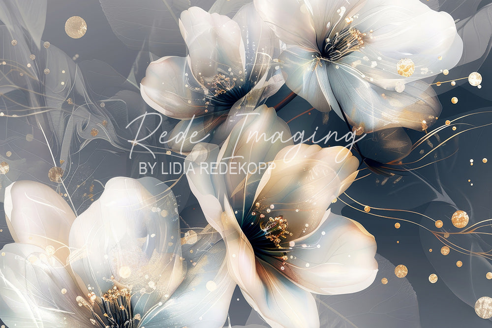 Avezano Pale Blue and Gold Floral Glitter Photography Backdrop Designed By Lidia Redekopp