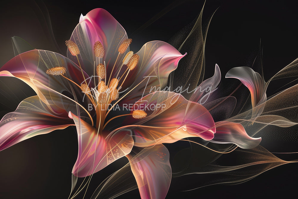 Avezano Pink-Orange Lily With Golden Accents Photography Backdrop Designed By Lidia Redekopp