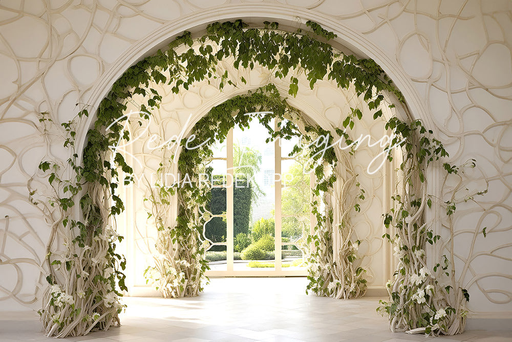 Avezano White Vine Arch and Garden View Photography Backdrop Designed By Lidia Redekopp