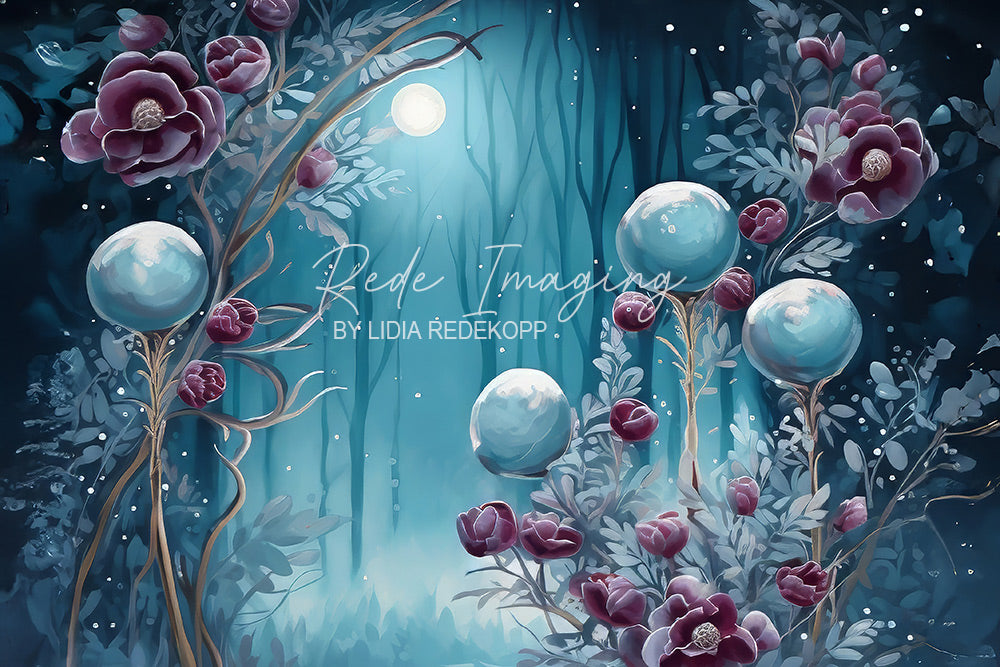 Avezano Moonlit Dark Purple Flower Sphere Photography Backdrop Designed By Lidia Redekopp