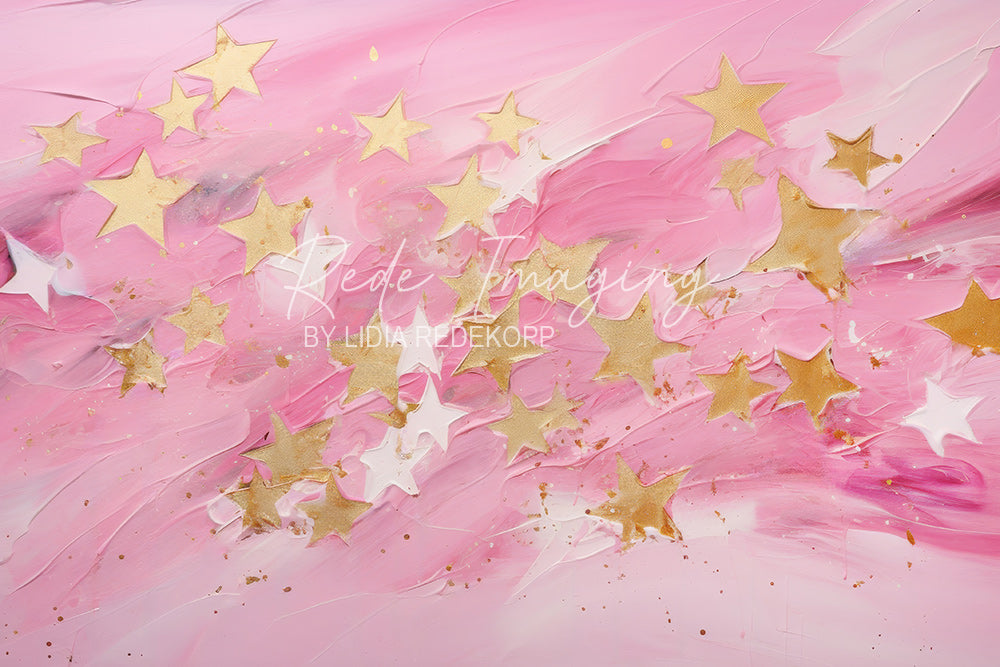 Avezano Pink and Gold Star Textured Painting Photography Backdrop Designed By Lidia Redekopp