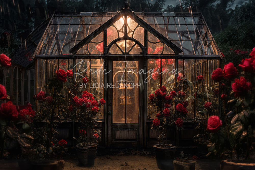 Avezano Rainy Night Red Rose Greenhouse Photography Backdrop Designed By Lidia Redekopp