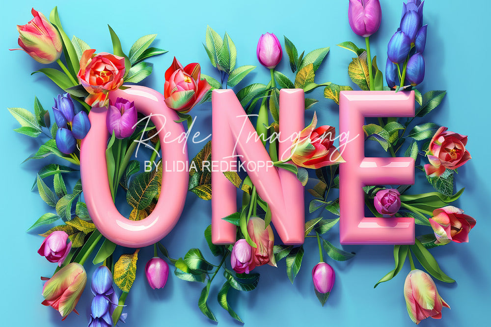 Avezano Pink 'ONE' Letter With Tulip Floral Photography Backdrop Designed By Lidia Redekopp
