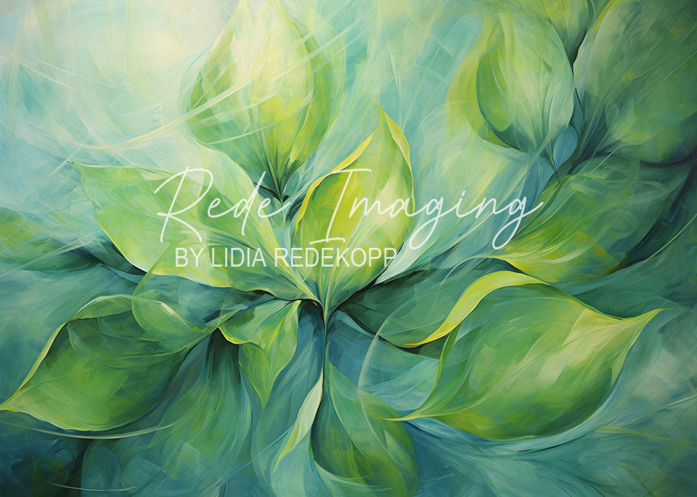 Avezano Teal Green Leaf Oil Painting Photography Backdrop Designed By Lidia Redekopp