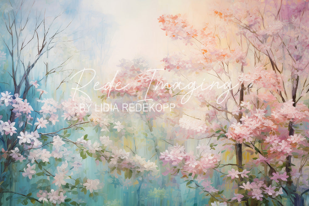 Avezano Pink and White Floral Forest Oil Painting Photography Backdrop Designed By Lidia Redekopp