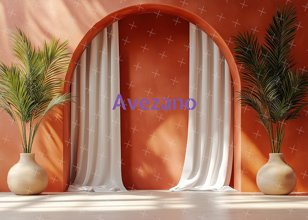 Avezano Bohemian Orange Arches and Palm Plants Photography Backdrop