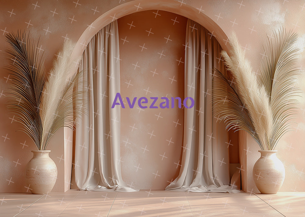 Avezano Bohemian Naked Pink Arches and Pampered Reed Flowers Photography Backdrop
